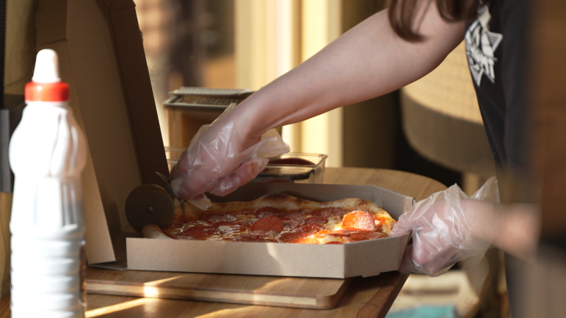 Піца, яку готують у піцерії Софії Скобєлєвої. Суспільне Чернігів"Це був холодильний стіл, де у нас зберігається тісто, кульки сформовані. Далі був передбачений тістоміс, який ми купляли за грантові кошти. Це виробничий стіл, на якому ми робимо всі нарізки. Також у нас там зберігається різне технічне обладнання. Слайсер також входив у цю вартість".