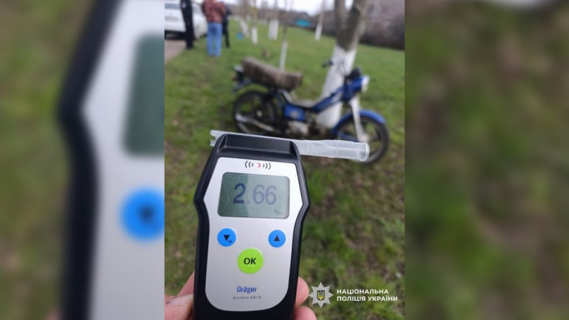 Їхав мопедом без номерів: на Чернігівщині зупинили водія, в крові якого алкоголь перевищував допустиму межу в 13 разів