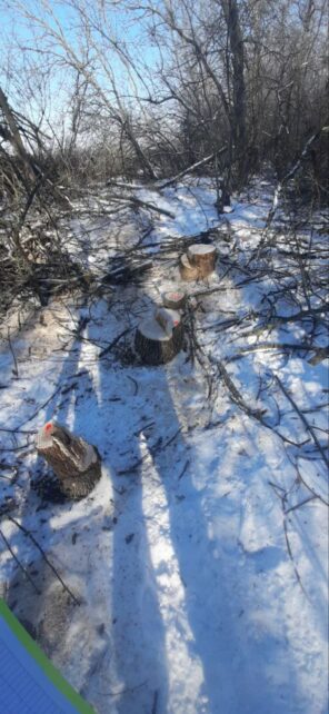 Перевірку провели після звернення громадянина на «гарячу лінію». Екоінспектори разом із громадським інспектором виїхали на місце та в присутності заявника зафіксували вирубку дерев різних порід у лісосмугах на землях комунальної власності однієї з громад Прилуцького району.