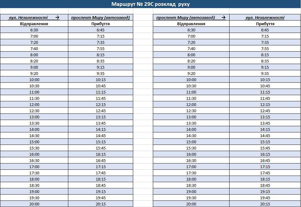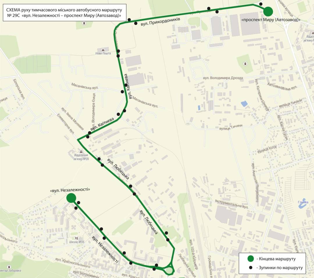 До уваги пасажирів громадського транспорту! Інформуємо, що з 15 квітня 2026 року розпочинає роботу тимчасовий міський автобусний маршрут № 29С «вул. Незалежності – проспект Миру (Автозавод)».