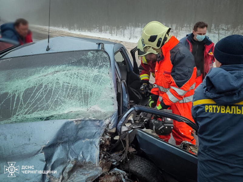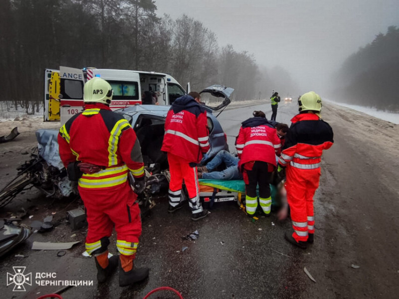За інформацією Аварійно-рятувального загону спеціального призначення ДСНС Чернігівщини, один із постраждалих опинився затиснутим у понівеченому транспортному засобі та не міг самостійно вибратися.