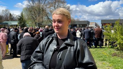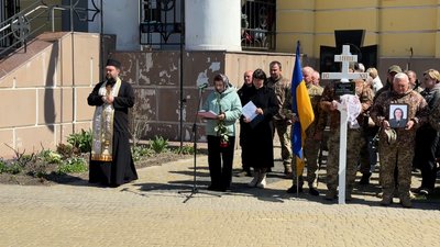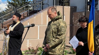 Побратим біля мікрофона на церемонії прощання з Яною Шкарлат. Суспільне Чернігів