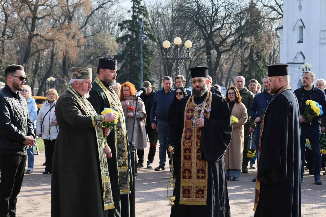 Сьогодні о 09:00 біля меморіального знаку на честь українських військовослужбовців, які загинули під час російсько-української війни, що розташований поруч із Катерининським собором, присутні вшанували їхню пам’ять. У заході взяли участь заступники Чернігівського міського голови — Сергій Фесенко та Вікторія Пекур, представники обласної влади, військовослужбовці, правоохоронці, духовенство та громадськість.
