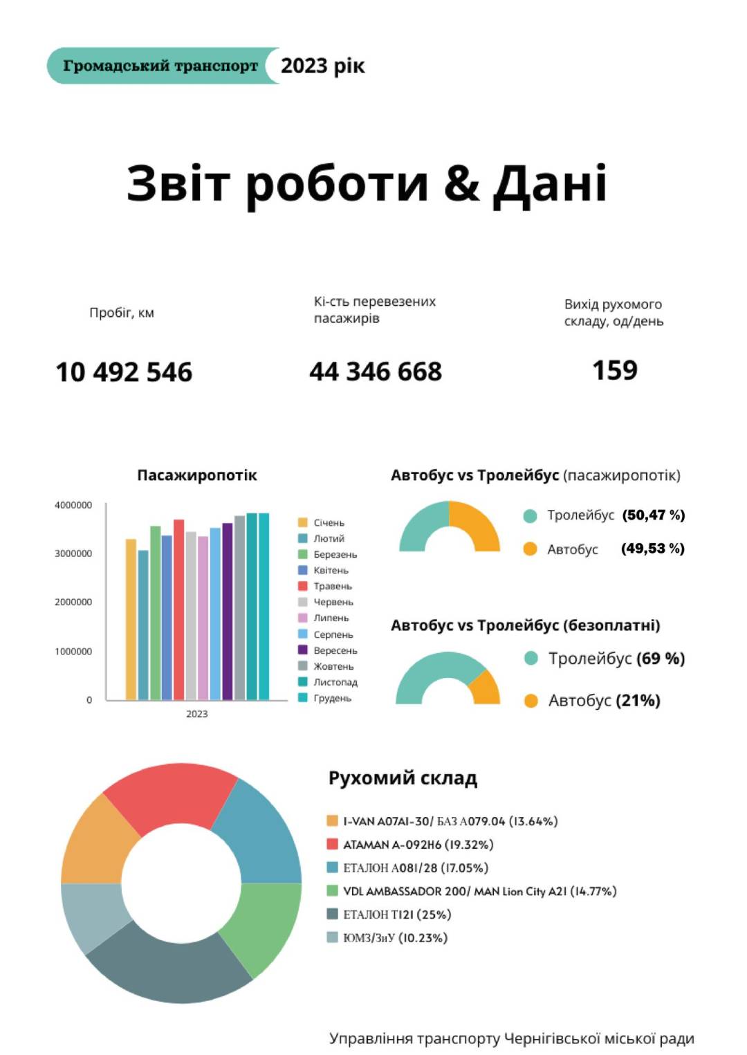 «Минулий 2023 рік був роком викликів, зокрема і для транспортної сфери. Втім, не дивлячись ні на що, рік, що минув можна назвати роком відновлення пасажирського транспорту міста Чернігова», — йдеться у повідомленні на сторінці профільного управління у мережі Фейсбук.