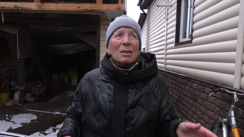 В одному з тих, що розташований навпроти податкової, живе син Ольги Самусь. Жінка розповідає, збиралася йти до аптеки, коли дізналася про приліт: