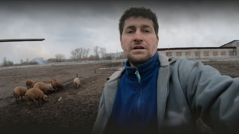 Вадим Мінєвський на своїй фермі у 2022 році. Особистий архів Вадима Мінєвського"Я вийшов на нашу територію, куди вони на той момент боялися заходити, бо там було два кнура. У них не вийшло нормальної комунікації, й в ту ніч вони ще їх боялись, й не встигли вбити. Мене це врятувало, бо тією територією я вийшов на поля і продовжив свою втечу".