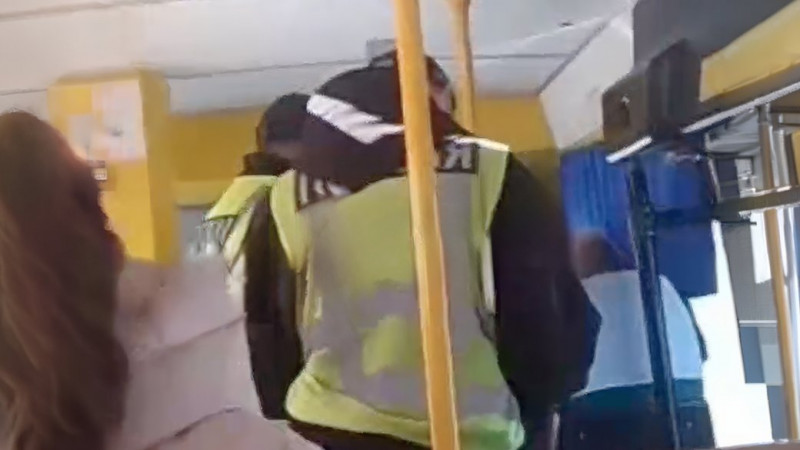 Поліцейські в автобусі затримують чоловіка, який супроводжував дітей в Козельці на Чернігівщині. «Труха Чернігів»