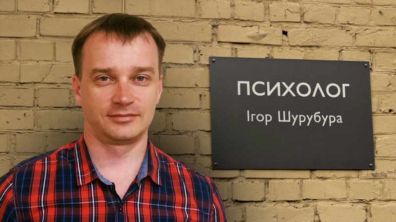 За інформацією: Суспільне Чернігів. На колажі зображений психолог з Чернігова Ігор Шурубура на фоні назви своєї практики. Facebook-cторінка Shurubura.Igor/Cуспільне Чернігів...