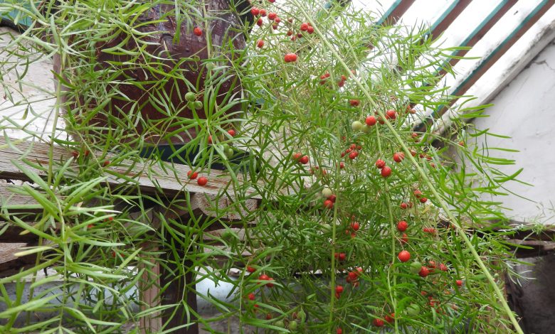 «Рослина легко може сягати 1,5 м завдовжки. На стеблах аспарагуса – тоненькі голкоподібні пагони. Завдяки їм кімнатна рослина дещо нагадує маленьку ялинку. Під час цвітіння аспарагус густо вкривається білими квіточками у вигляді дрібних зірочок, які згодом перетворюються на яскраві тугі червоні ягідки. Попри їхній привабливий вигляд, пробувати ці ягідки на смак не варто, бо вони можуть нашкодити здоров’ю», – повідомила Марія Коробко.