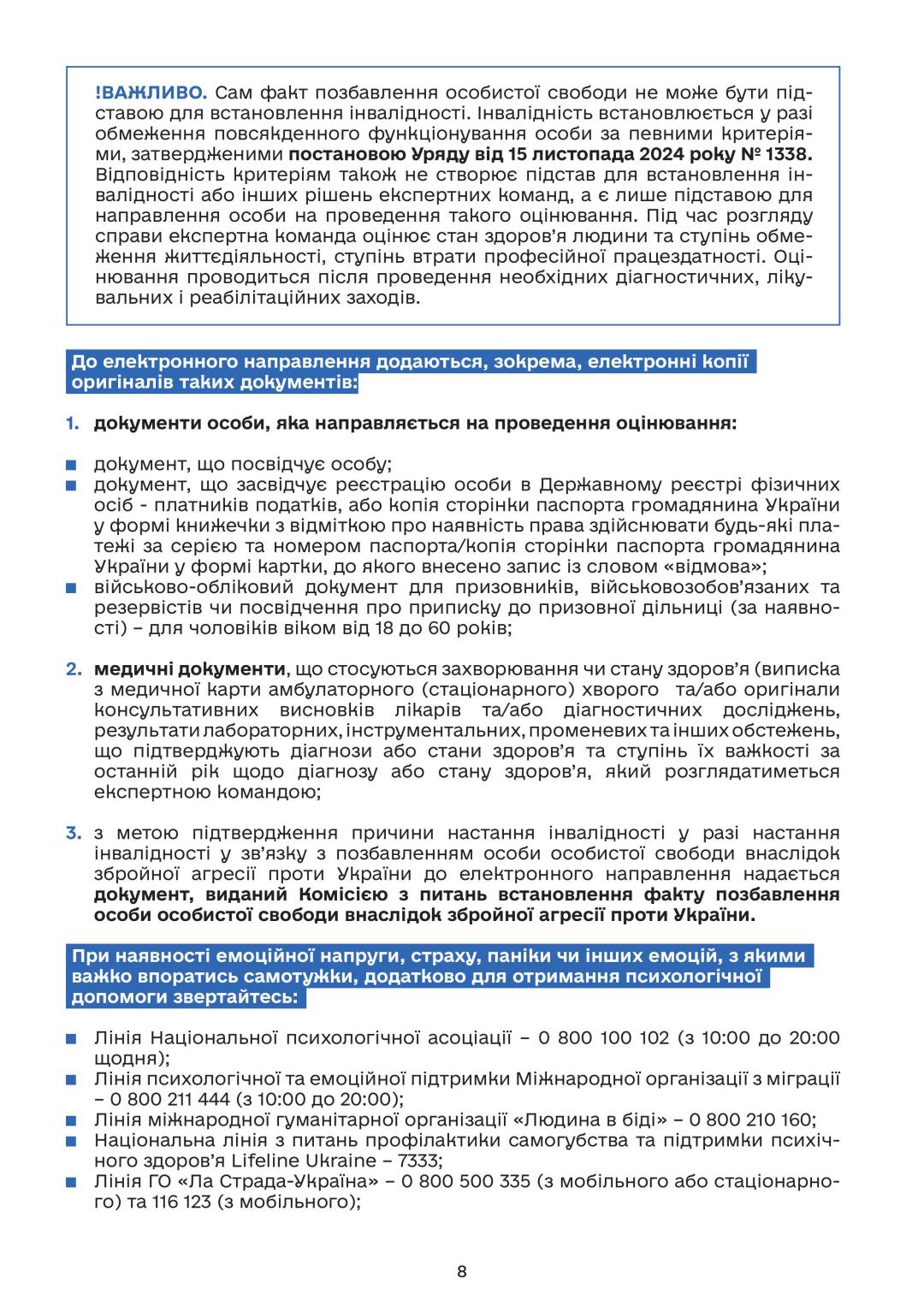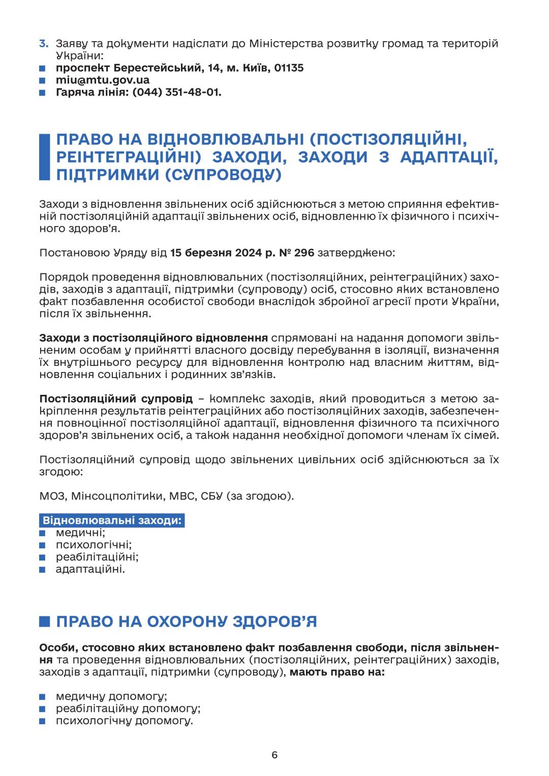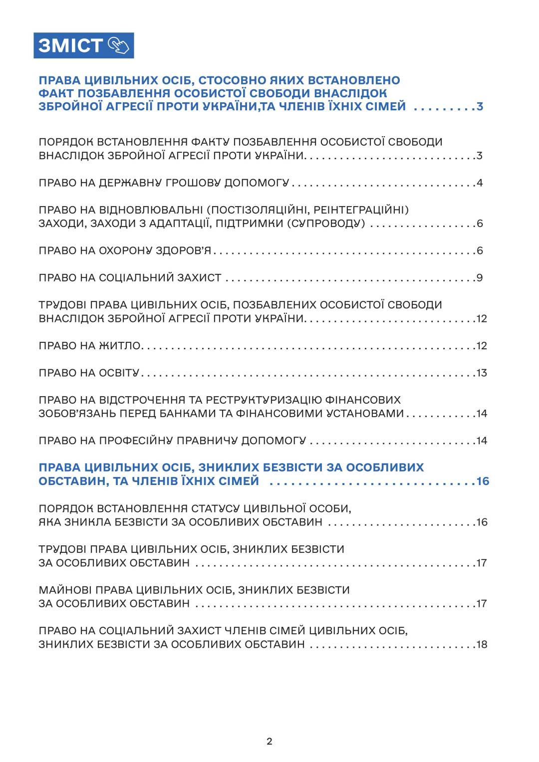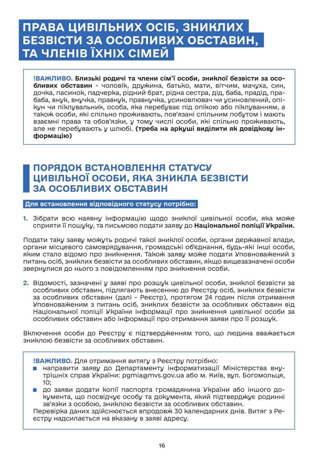 У зв’язку з численними зверненнями громадян щодо надання роз’яснень з питань реалізації прав цивільних осіб, позбавлених особистої свободи внаслідок збройної агресії проти України, осіб, зниклих безвісти за особливих обставин, а також членів їхніх сімей, Секретаріатом Уповноваженого Верховної Ради України з прав людини спільно з центральними органами виконавчої влади, до компетенції яких належать зазначені питання, розроблено спеціальну Дорожню карту.