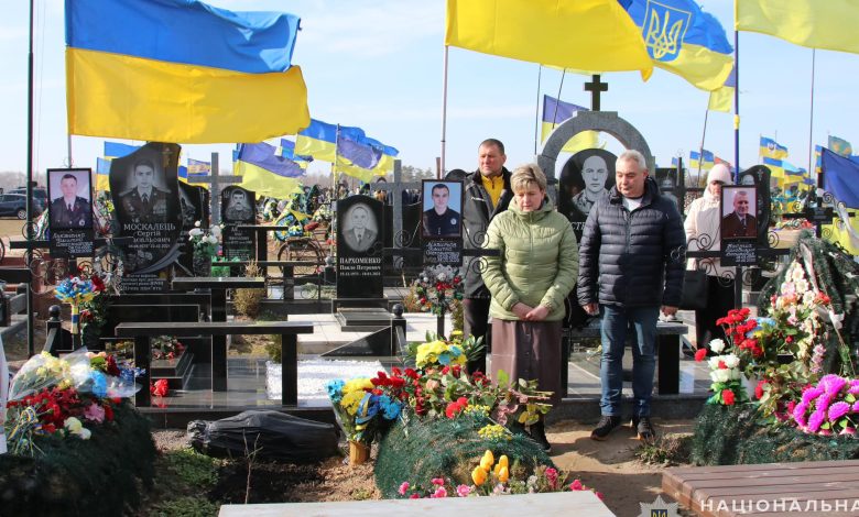 Сьогодні відбувся пам’ятний захід на честь чотирьох загиблих поліцейських: Володимира Настича, Дмитра Музирьова, Дмитра Лук’яненка та Олексія Христенка. 28 лютого 2022 року поліцейські героїчно загинули в приміському селі Киїнка, захищаючи Україну від російської навали.