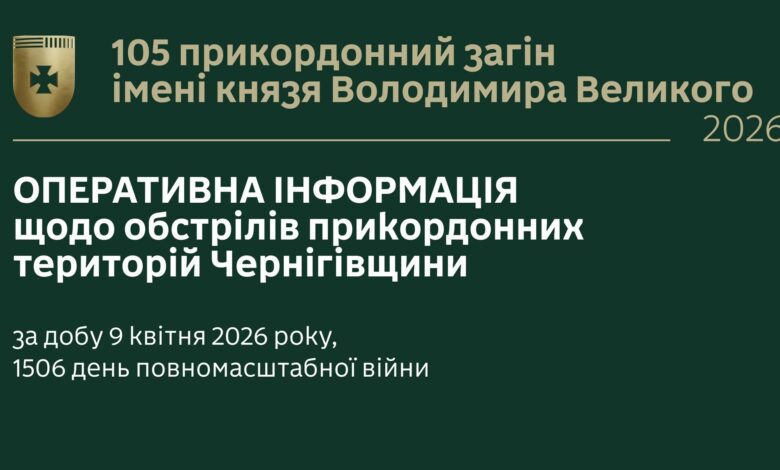 Упродовж 9-ї доби квітня, у 1506-й день повномасштабної війни, російські війська вкотре обстрілювали прикордонні громади Чернігівщини.