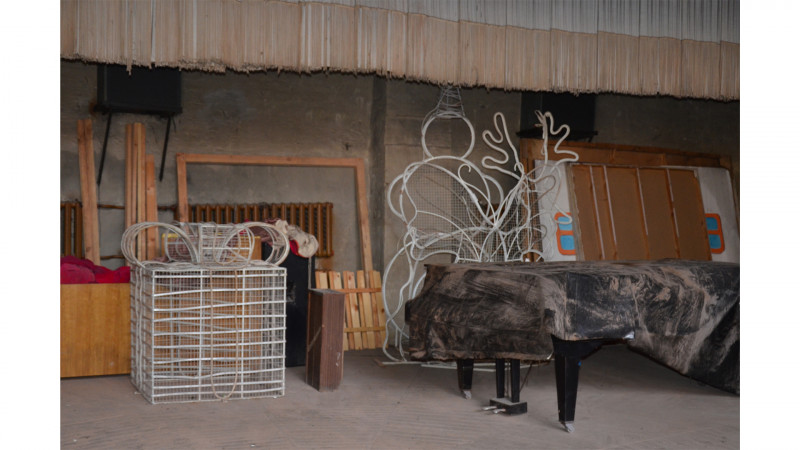 Інтер’єр відображає історію останніх місяців міста. Поспіхом обладнані буржуйки, творчий хаос, пахне деревиною. Прямо біля робочого місця є куточок, де жінки готують обід. Одна із жінок приводить на роботу песика, він сидить прив’язаний біля її робочого місця.