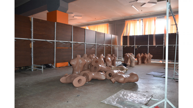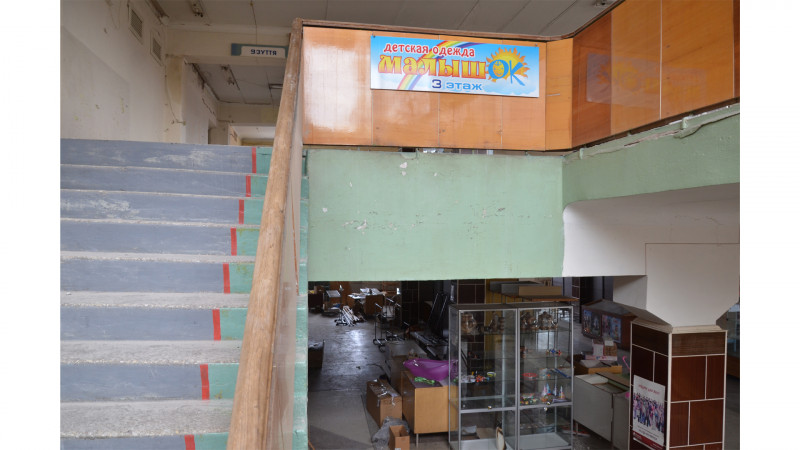 За більше ніж тиждень після прильоту, в універмазі не прибрано: на підлозі скло, зі стелі звисають частини обірваних ламп та матеріалів, з фасадів — подерті рекламні плакати. Крізь розбиті вікна гуляє вітер і видно, що попри обстріли та небезпеку, князь Ігор на площі — на коні.
