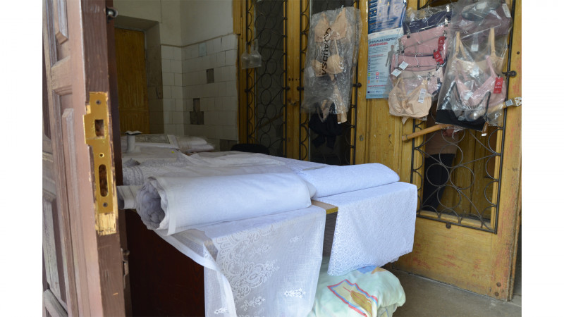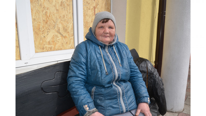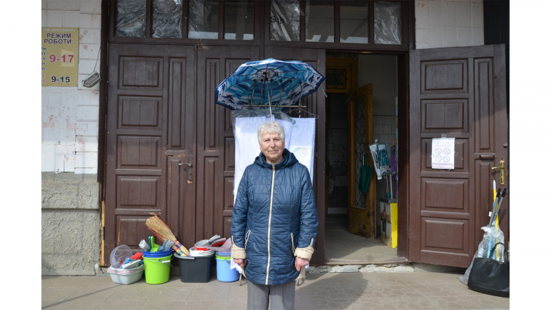 До торгового столу в коридорчику підходить 83-річна жінка з рідкісним іменем — Капітоліна Абашкіна. Вона шукає відріз вузького тюлю. В її будинку вибило два вікна після обстрілу, тюль розірвало. Також тріснула стіна, пошкоджена стеля.