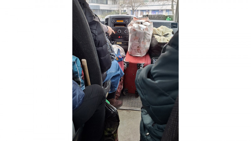 Атмосфера в маршрутці — ніби з 90-х чи початку нульових. Тільки без російського шансону, і замість розмов пасажири занурені у смартфони.