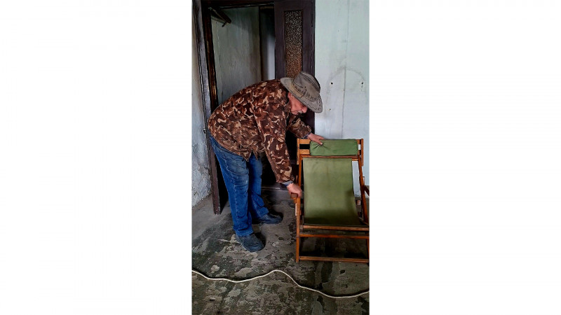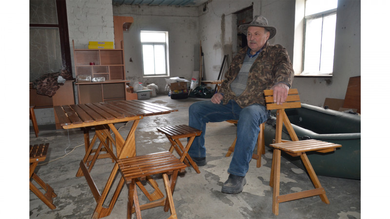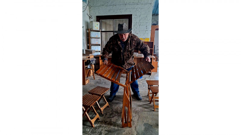 Чоловік заснував "Берест" у 1992 році. За час роботи запатентував столи, табуретки, шезлонги з дерева, які компактно складаються. Усю продукцію виготовляв із дуба разом із працівниками, їх тут було до 10 чоловіків. Зараз усіх мобілізували. Тому на роботу найняв жінок. Вони виготовляють полички та іконостаси для дому. Власне, з цього наразі й живе підприємство і чекає на повернення чоловіків, аби відновити виробництво запатентованих товарів.