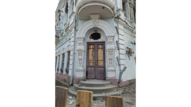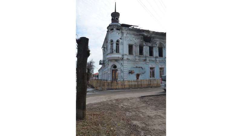 Історична пам'ятка архітектури кінця XIX — початку XX століття, будинок купця Медведєва, дуже побитий. Сюди прилетіло 13 березня. Багато місцевих жалкують за цією блакитно-білою спорудою, що гармонійно поєднує в собі елементи різних напрямів, епох та культур.
