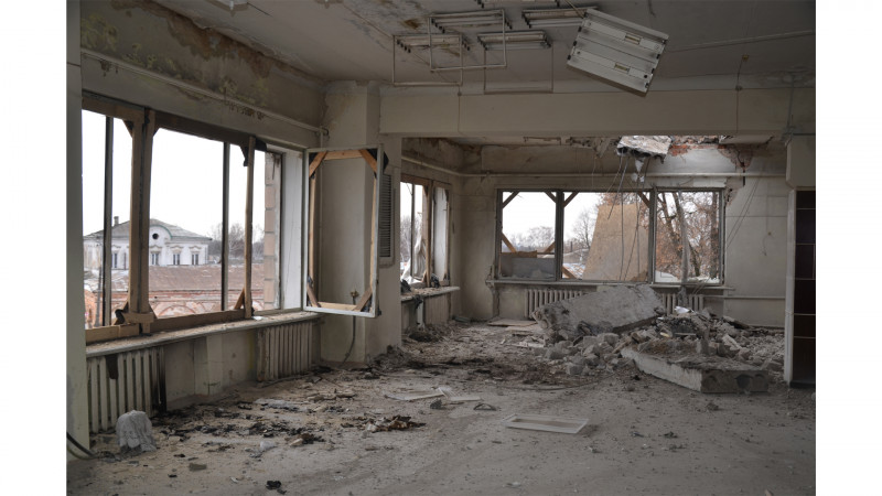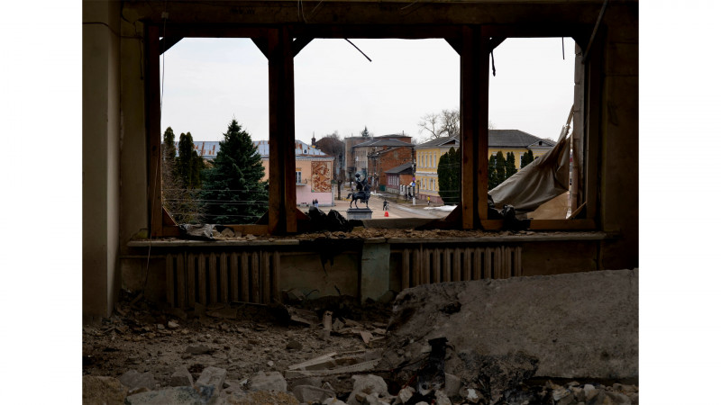 Тема обстрілів стала ключовою для міста. Воно часто з’являється в новинах. Цю реальність щодня фіксують працівники Новгород-Сіверської районної військової адміністрації. З минулого року її очолює Олександр Селіверстов. Він родом зі сходу, бачив на власні очі, як у 2014-му почалася війна з Росією. Був учасником АТО, у 2022-му — захищав Чернігів. Місце його роботи — будівля РВА, яку місцеві називають "білим домом", — теж зазнала руйнувань.