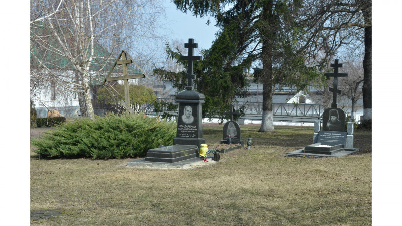 Ще один парадокс комплексу — поховання. Під час реставраційних робіт у 1997-2004 роках на території знайшли рештки людей, які жили, імовірно, у ХІХ столітті. Їх склали в кілька трун і поховали, встановили дерев’яний хрест. Пізніше останній спочинок тут знайшли двоє монахів. Та на цьому фоні виділяється ще одна могила. Вона світська, належить меру Новгорода-Сіверського Олегу Бондаренку, який помер у 2020 році.