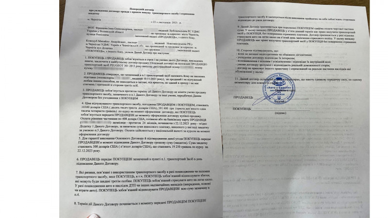 "Як приніс останній платіж, мені сказали: два-три тижні, і я отримаю право власності на автомобіль. І десь приблизно пів року щомісяця мені одне й те саме повторювали. Вже минув рік, як мені обіцяють право власності, автомобіль у мене конфіскували — справжні власники цього автомобіля".