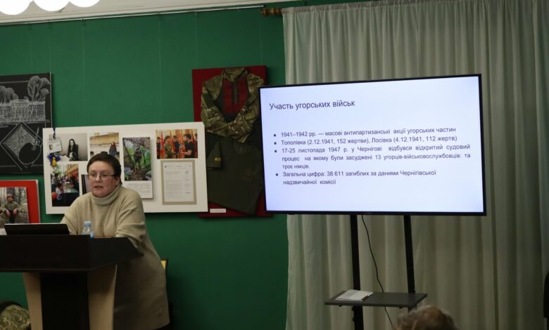 Перший – про діяння нацистських загарбників стосовно матеріальних і людських збитків. А інший був складений саме про причетність до злочинів угорських військовослужбовців. І тоді комісія встановила, що вони причетні до знищення більш ніж 38 тисяч громадян. Але сюди входять не тільки знищені села, а «розвантаження» в’язниць, розстріли єврейського населення на території 12 північних районів області – включно з Корюківським, Сновським, Новгород-Сіверським», – доповнила Олена Лисенко.