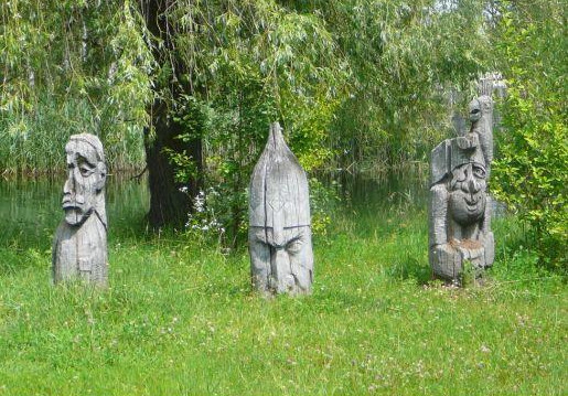 Дерев’яні скульптури на території гідропарку. Нині знищені.