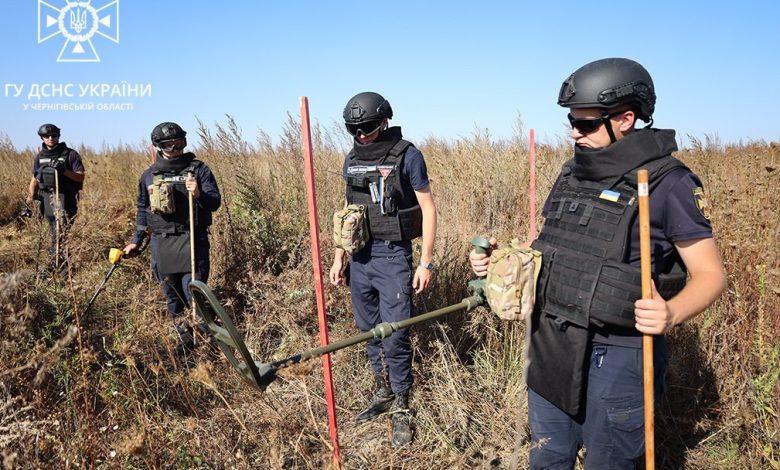 На території Чернігівської області завдання за призначенням виконують 5 піротехнічних розрахунків ГУ ДСНС України у Чернігівській області та 1 механізований розрахунок з Міжрегіонального центру швидкого реагування ДСНС України. Станом на 14 вересня саперами відреаговано на 4932 виклики, вилучено та перевезено 52102 вибухонебезпечних предметів.