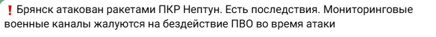 Зазначається, що України атакувала один із брянських заводів ракетами «Нептун».