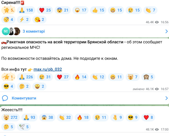 В сусідній із Чернігівською Брянській області зафіксовано низку ракетних ударів.