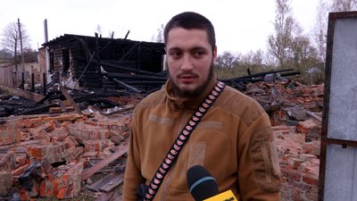 "Там усе погоріло. А це знов сюди. Усе другий раз вилітає. Вікна побиті, двері заклинило. Ну, оце вже поприбивали шифер хлопці. Вставляють вікна".