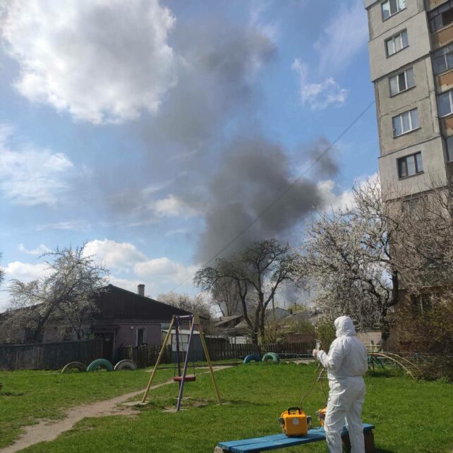 Сьогодні, 17 квітня, після нічних атак ворожими дронами у Чернігові спостерігалась задимленість, неприємні запахи гарі та диму у повітрі. Фахівці ДУ «Чернігівський ОЦКПХ» дослідили атмосферне повітря у визначених точках з урахуванням димового шлейфу.