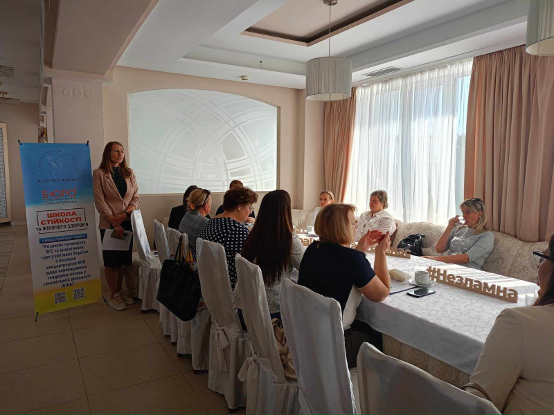 Антоніна Федорченко, голова громадської організації «Жіночий формат» розповідає, що упродовж двох місяців разом із однодумцями працює над проєктом, що має назву «Школа стійкості та жіночого здоров’я». Це три заходи про три сфери жіночого здоров’я – фізичне, психологічне та соціальне. А ініціатива «Теревені. Як бути зібраним та де шукати допомогу: про можливості взаємопідтримки та точки співпраці для жіноцтва» – це традиційний майданчик для обговорення, де збирають представників організацій, здебільшого жіночих або тих, які працюють із жінками та надають різнопланову допомогу.