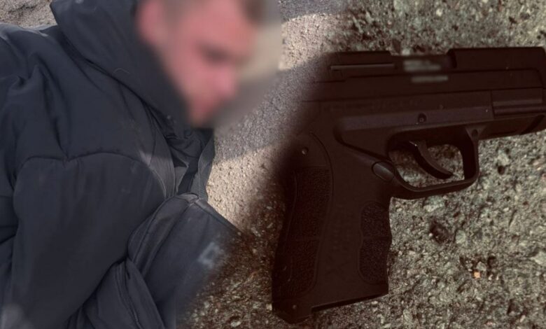 Поліцейські оперативно затримали 23-річного чоловіка в порядку ст. 298-2 Кримінального процесуального кодексу України. Зброю вилучено, мотиви скоєного встановлюються.