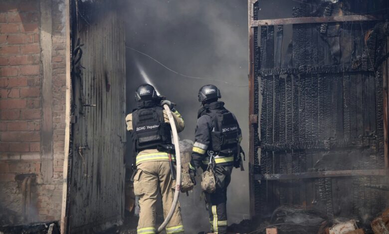 Влучання зафіксовано на території одного з підприємств міста. Внаслідок удару загорілися п’ять гаражів та адміністративна будівля на загальній площі приблизно 200 кв. м.