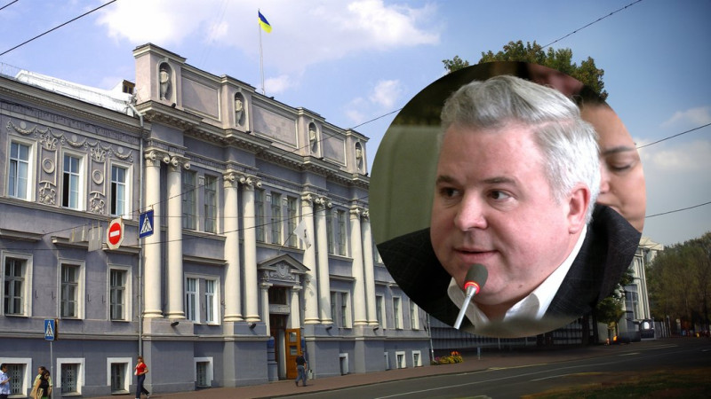 Будівля міської ради у Чернігові та депутат Віталій Голець. Суспільне Чернігів