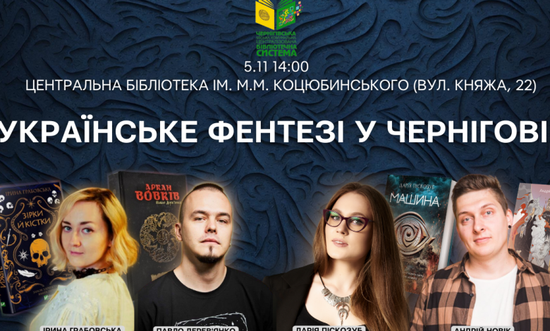 Цієї неділі, 5 листопада, о 14:00 у ЦБ ім. М. М. Коцюбинського (вул. Княжа, 22) нереально-фантастична подія – зустріч із провідними українськими фантастами: Іриною Грабовською, Дар’єю Піскозуб, Павлом Дерев’янком, Андрієм Новіком.