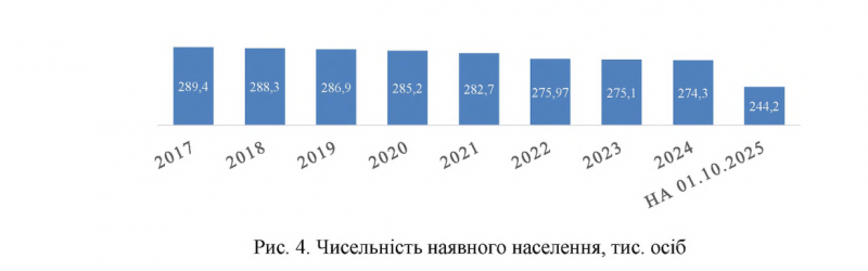На цьому тлі зменшується й кількість зареєстрованих жителів міста. Станом на 1 січня 2025 року в Чернігові було зареєстровано 274,3 тисячі осіб, тоді як на початок 2022 року – 282,7 тисячі. Водночас у документі також наведені оновлені дані: станом на 1 жовтня 2025 року кількість зареєстрованих у місті становила 244,16 тисячі осіб.