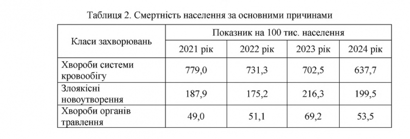 За інформацією управління охорони здоров’я Чернігівської міської ради, основними причинами смертності у 2024 році були хвороби системи кровообігу та новоутворення. Зокрема, показники смертності на 100 тисяч населення становили: