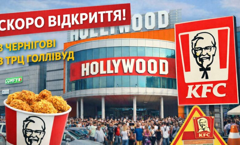 У Чернігові в ТРЦ Hollywood відкриється всесвітньо відома мережа фаст-фуду KFC.