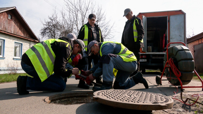 Працівники КП «Чернігівводоканал» оглядають каналізаційну систему у мікрорайоні Подусівка у Чернігові. Суспільне Чернігів