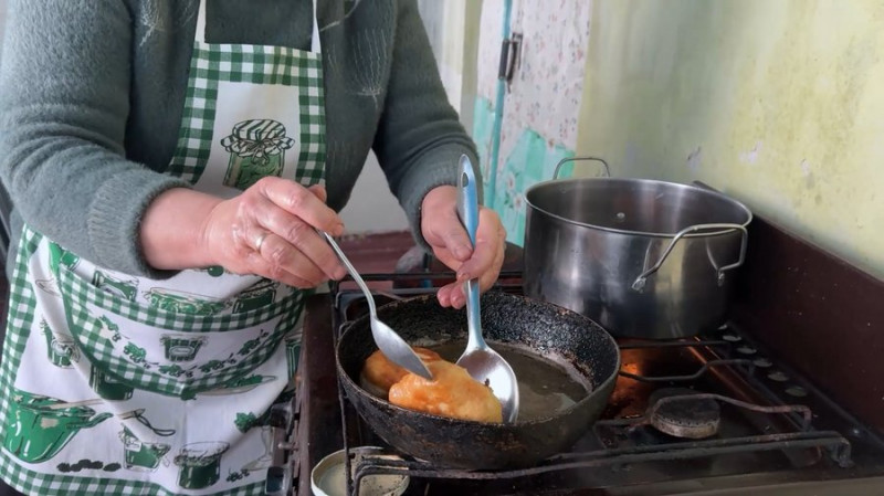 Смажать пончики, зазвичай, по суботах, коли до села приїздить пересувне відділення пошти.