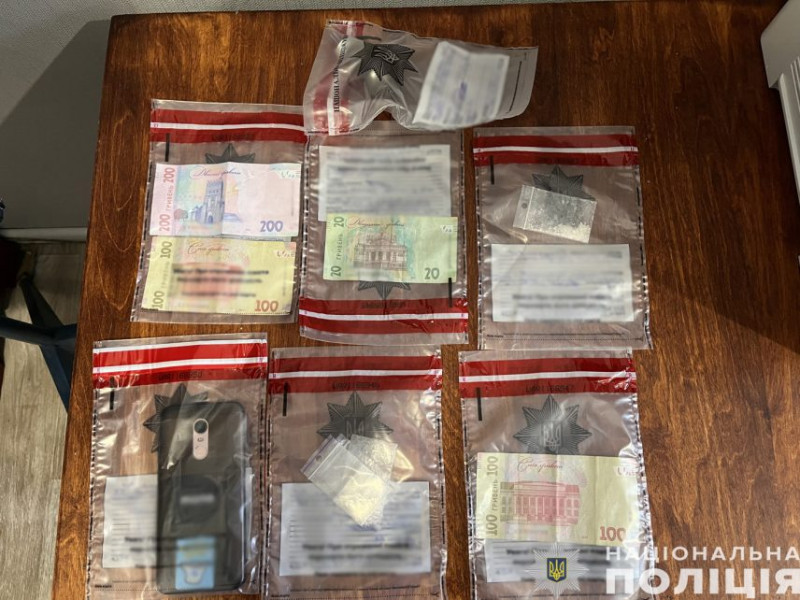 Під час обшуку поліцейські виявили та вилучили зіп-пакети з порошкоподібною речовиною, що схожа на солі «Альфа-PVP», пристрій для куріння, грошові кошти, отримані від злочинної діяльності, та мобільний телефон.