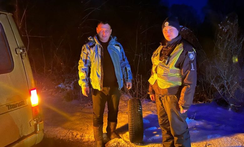 Ввечері, 9 лютого, під час патрулювання території обслуговування екіпаж групи реагування патрульної поліції помітив на узбіччі дороги автомобіль з увімкненою аварійною сигналізацією. Зупинившись, поліцейські з’ясували, що в автівці спустило колесо і керманич потребує допомоги.