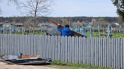Люди прибирають з кладовища наслідки атаки РФ. Суспільне Чернігів