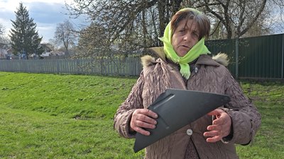 Каже, сюди вдень 21 квітня влучили дві російських "Герані". Було б три, та одна не долетіла, розповідає чоловік.
