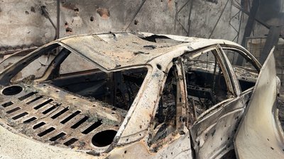 Згорівший внаслідок атаки РФ автомобіль. Суспільне Чернігів