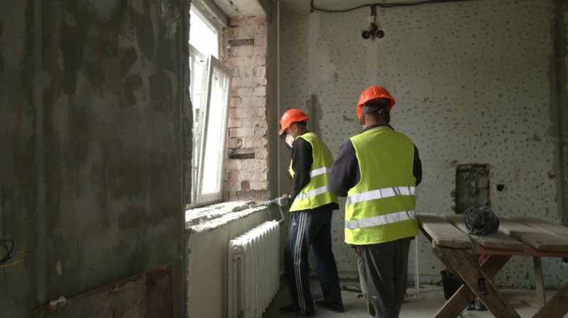 Будівельні роботи виконують консорціум "УТБ" та компанія "Діоро". В ході реконструкції тут облаштують 43 квартири. Більшість з них буде з окремим входом з вулиці, каже Фомічев. Також передбачено двоє апартаментів для людей, які пересуваються на кріслах колісних.