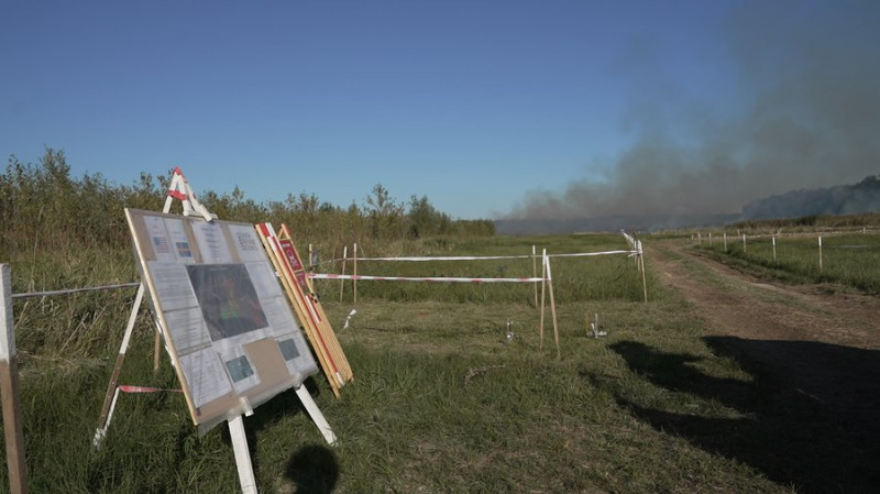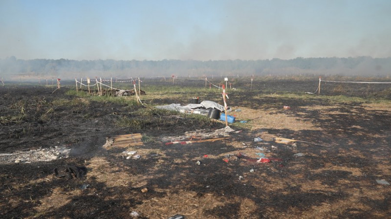 Поле з розміткою для розмінування після ракетного удару в районі Новоселівки поблизу Чернігова 4 вересня 2025 року. Суспільне Чернігів