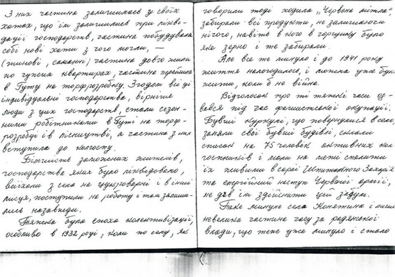 «Я почула від місцевого поштаря, який спілкувався з мешканцем села, що в нього є такий зошит. Оскільки я закінчила історико-філологічний факультет, усе, що пов’язане з історією, мене цікавить. Тому я попросила цей зошит почитати і зробила собі копію».
